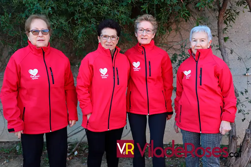 La Mari Carmen García, la Lluïsa Alonso, la Celia Alonso i Maria Jesús Martínez amb la seva nova i flamant jaqueta esportiva