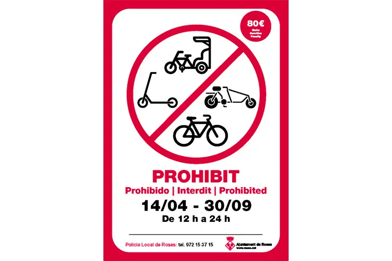 Roses prohibirà anar amb bicicleta, tricicle, patins o patinets pel passeig marítim